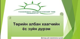ТӨВИЙН ҮЙЛ АЖИЛЛАГААНД МӨРДӨЖ БУЙ ХУУЛИЙН ТӨРӨЛ, ЗААЛТУУД …